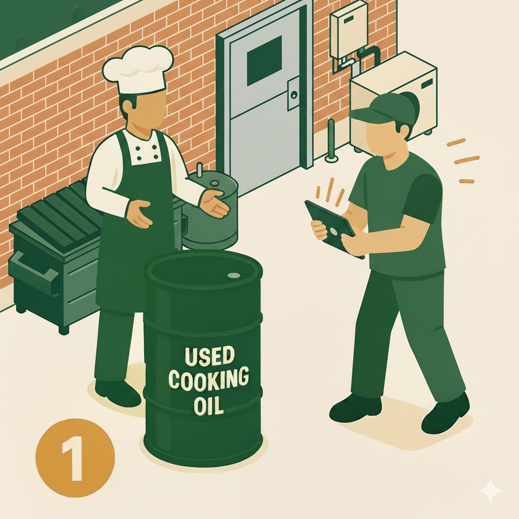 Our process covers everything: secure container installation, reliable used cooking oil pickup, and scheduled grease trap cleaning. We handle the paperwork and always show up on time, so you can focus on running your restaurant.